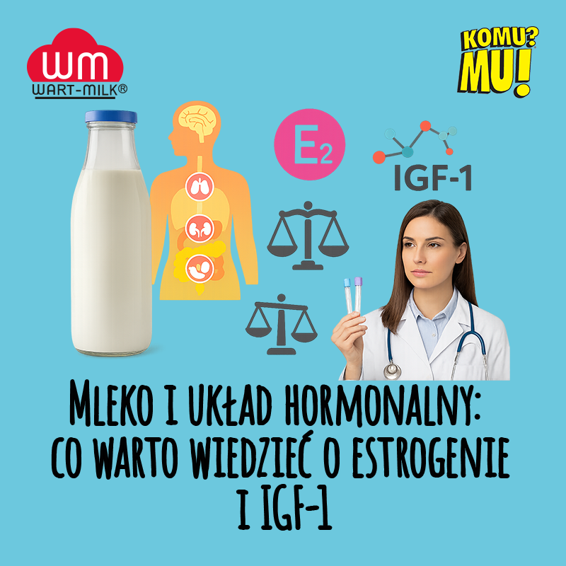 Mleko krowie zawiera naturalnie estrogeny i IGF-1, ale w ilościach bardzo niskich w porównaniu do tego, co organizm wytwarza sam. Dla porównania: dorosły człowiek produkuje dziennie setki razy więcej IGF-1 niż znajduje się w szklance mleka.